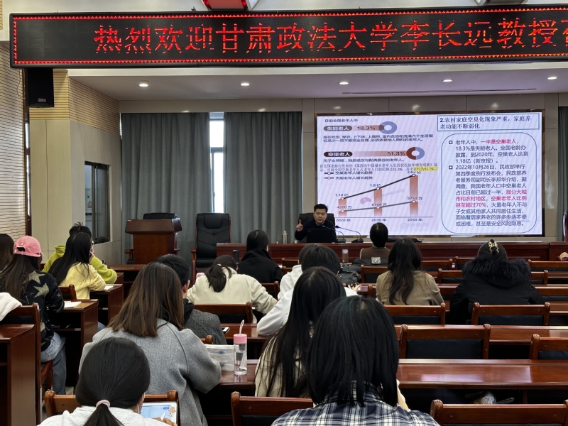 2023年12月7日下午,甘肃政法大学李长远教授应邀在威尼斯wnsr66610号教学楼D区4楼学术报告厅为我院师生带来了题为“ 统合治理与自主治理:农村互助养老治理的实践逻辑——基于全国农村互助养老典型案例的分析”的学术讲座。本次讲座由我院王琪瑛副教授主持,学院师生参加了此次讲座。